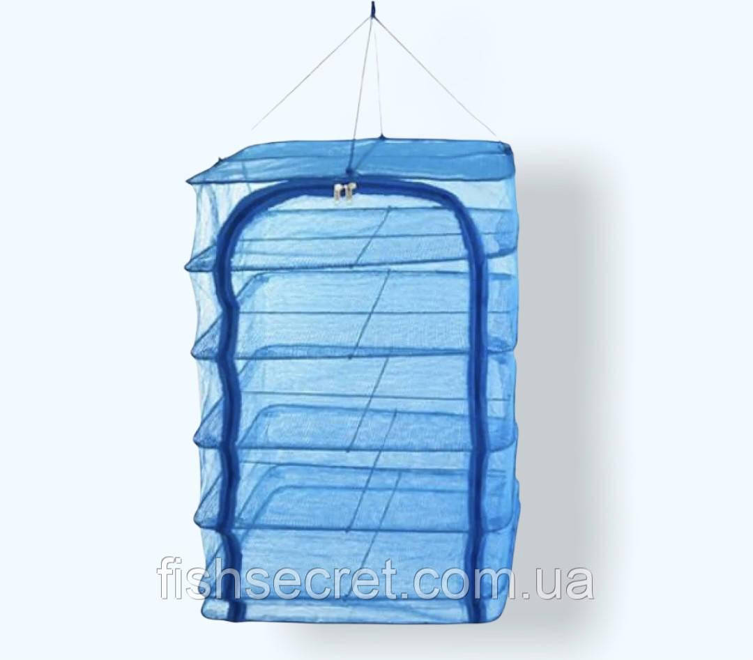 Дрібні осередки поліетиленової сітки не дають проникнути москитам та іншим комахам. Завдяки подвійному дну конструкції є можливість установки піддону. За допомогою 5(6) горизонтальних полиць відбувається рівномірна природна вентиляція і просушування риби без перевертання.